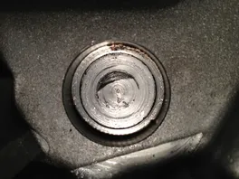 um etwas die Spannung von der kaputten Stelle zu nehmen, von außen etwas gefräst und dann mit kaltmetall zugekittet hat.
