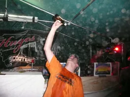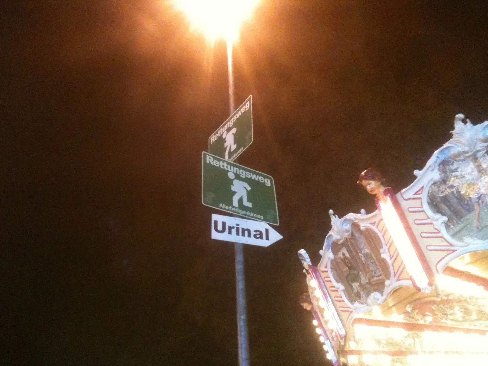 Das Bild zeigt einen mit 3.00 Promille am Boden liegenden Fotografen kurz vor seiner Festnahme. Denn im Glauben, seine Blase gepflegt und gesitteter Weise leeren zu können, kroch er hiernach weiter, zog sich am laufenden Karussell mehrere Runden mitschleifend und lascher Hose hoch und stellte sich mehr oder minder wankend in die Mitte davon und gab seiner Blase sehr zum Leidwesen anwesender Passagiere freien Lauf, bis die Polizei kam.