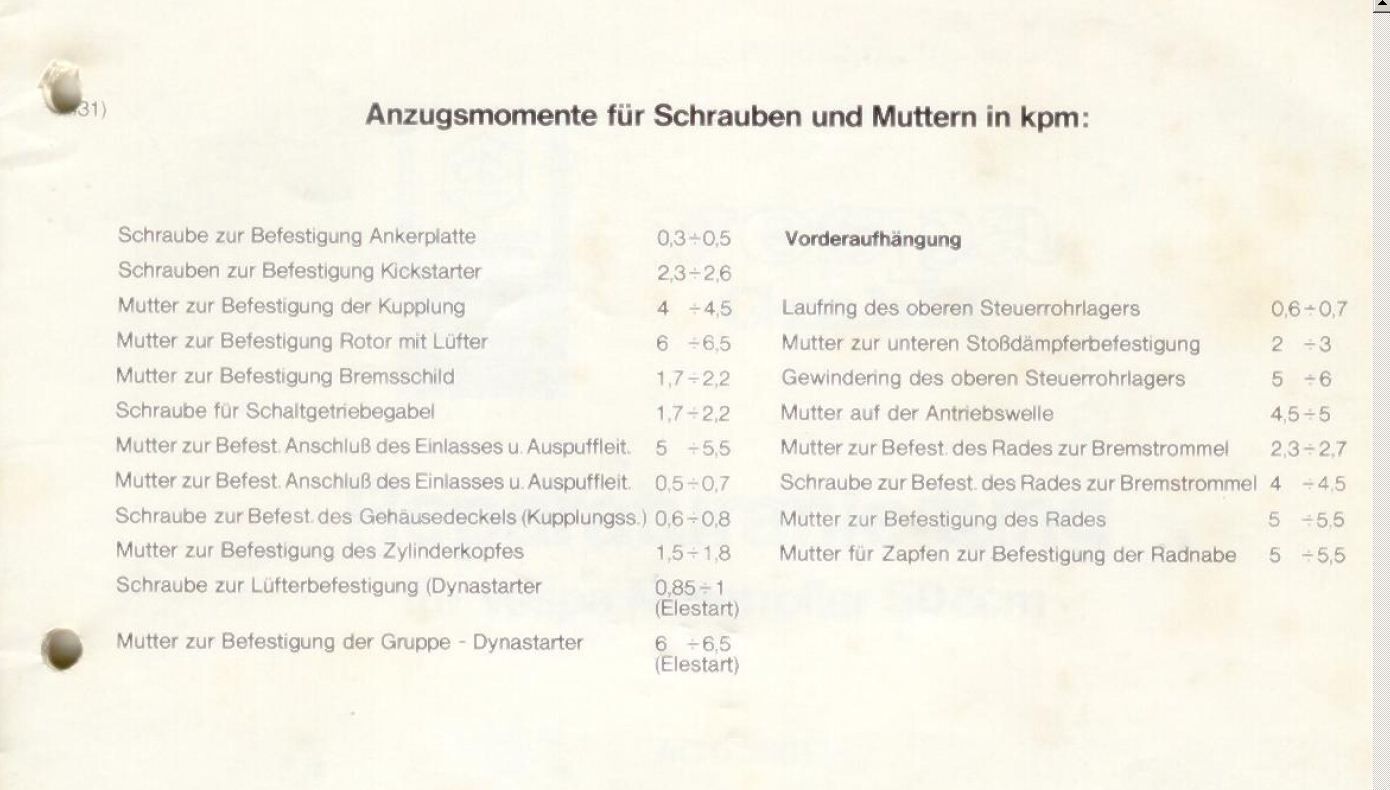 Bild und Drehmomente. Die Umrechnung in Nm ist Kpm mal 0,9.