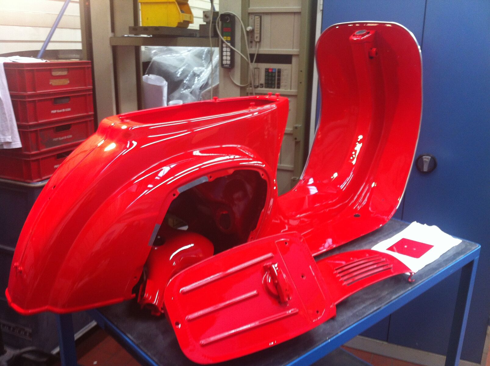 Endlich gehts weiter, hab gestern den Roller inkl. Teile vom Lackierer geholt. Teile sehen alle super aus, Vorarbeit war ja auch von mir. :D