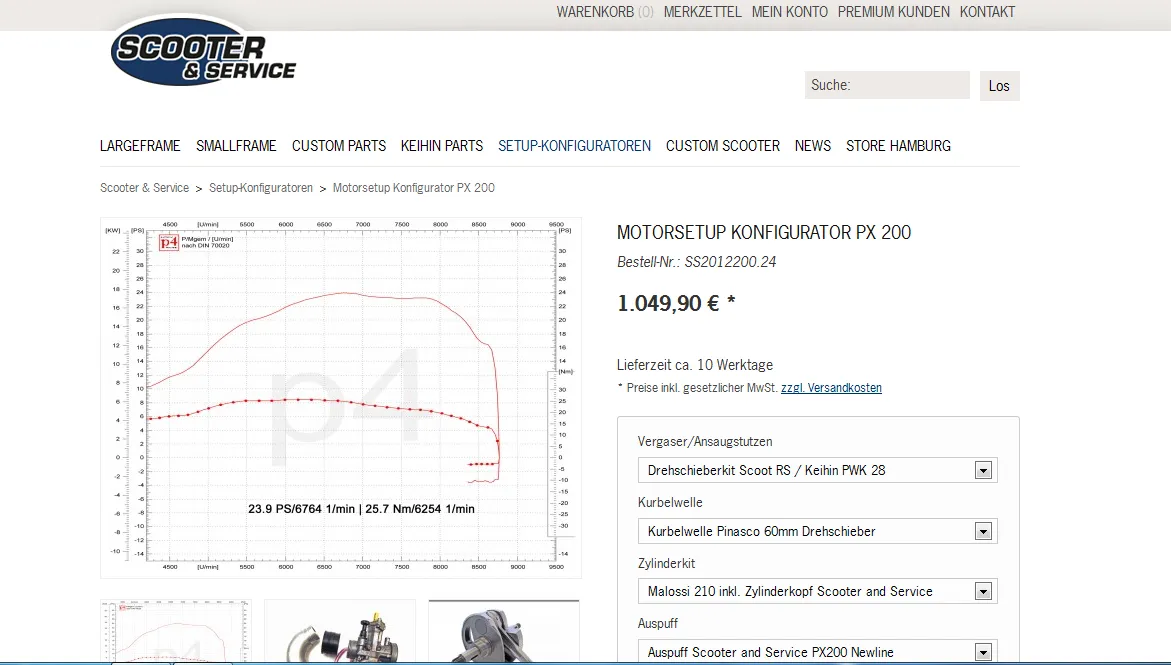 Ich fahr den Malossi mit 30er TMX auf nem MRP-Stutzen, Vespatronic, MMW-Kupplung, S&S-Kopf und Newline-Auspuff.