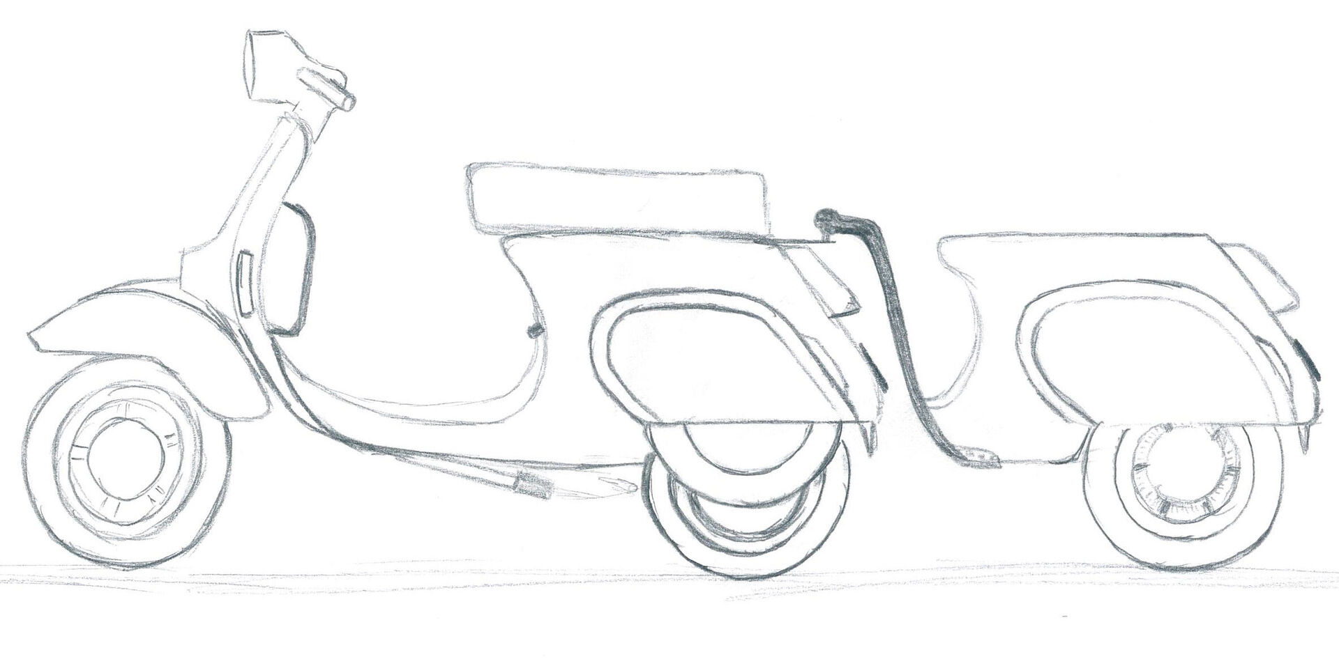 Da ich meine Vespa derzeit für so ziemlich alle Alltagserledigungen nutze, auch zum Einkaufen, kam mir der Gedanke, für das gute Stück einen Anhänger zu entwerfen. Da ich aber niemals so n Baumarktanhänger dranhängen würde, muss etwas her, was optisch mit der Vespa harmoniert.
