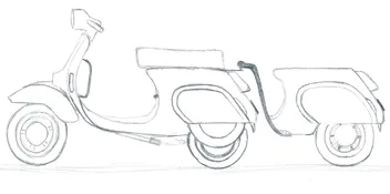 Da ich meine Vespa derzeit für so ziemlich alle Alltagserledigungen nutze, auch zum Einkaufen, kam mir der Gedanke, für das gute Stück einen Anhänger zu entwerfen. Da ich aber niemals so n Baumarktanhänger dranhängen würde, muss etwas her, was optisch mit der Vespa harmoniert.