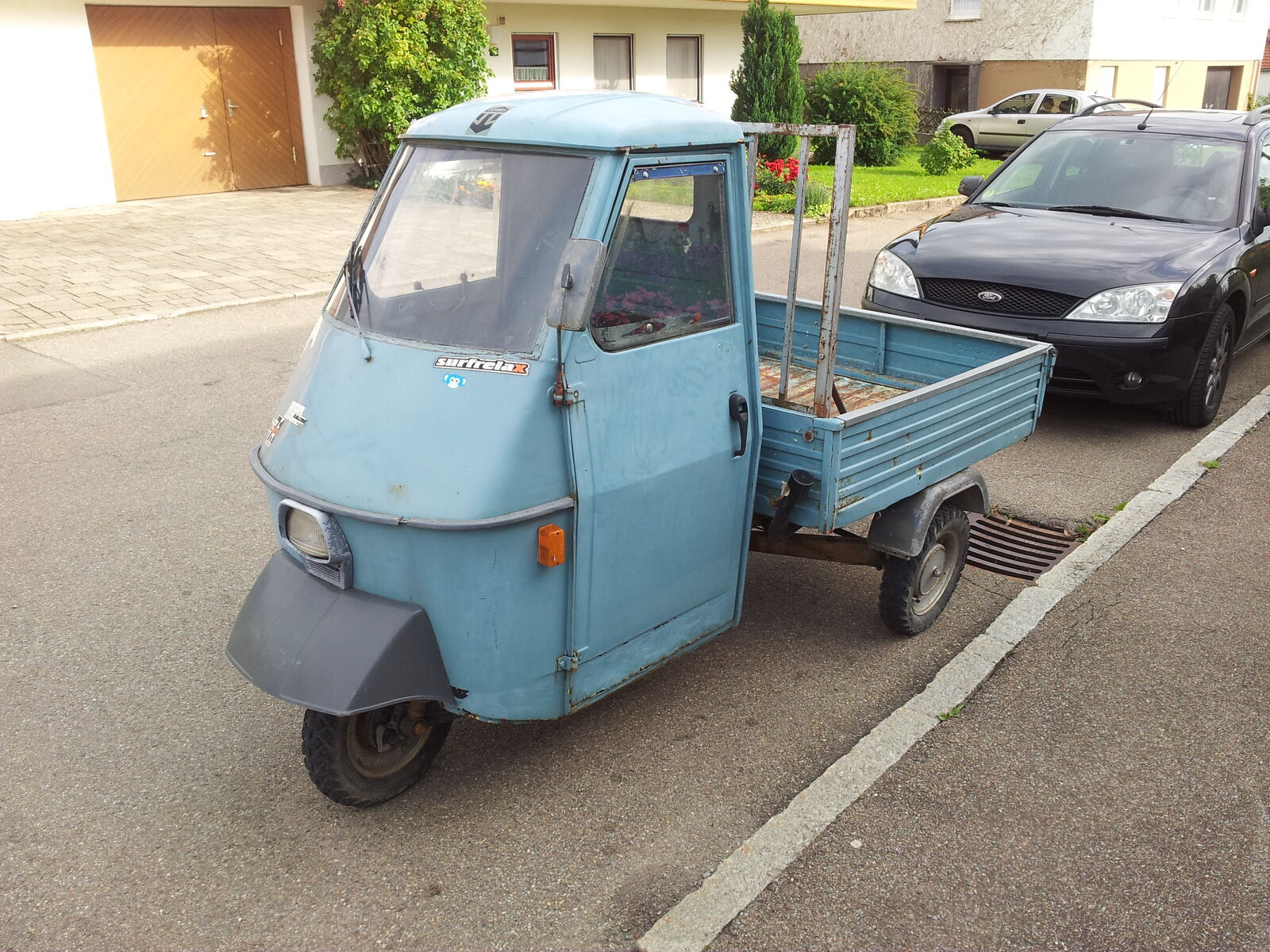 Ich bin für eine Schwerlast-Ape. In orange mit Rundumleuchten auf dem Dach und so weiter. So wie hier: