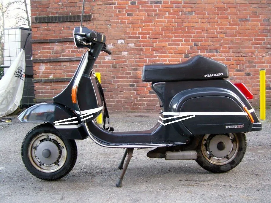 Nun ist es mit den Strichen auf Vesparahmen nicht ganz einfach, man kann eig überhaupt nichts abmessen, dass ist reines Augenmaß. Das klappte vor 5 Jahren auch ziemlich perfekt, nur da habe ich gute 5m weglaufen können und konnte so schön aus der Ferne den Strich gerade ziehen.