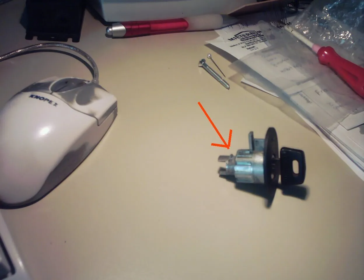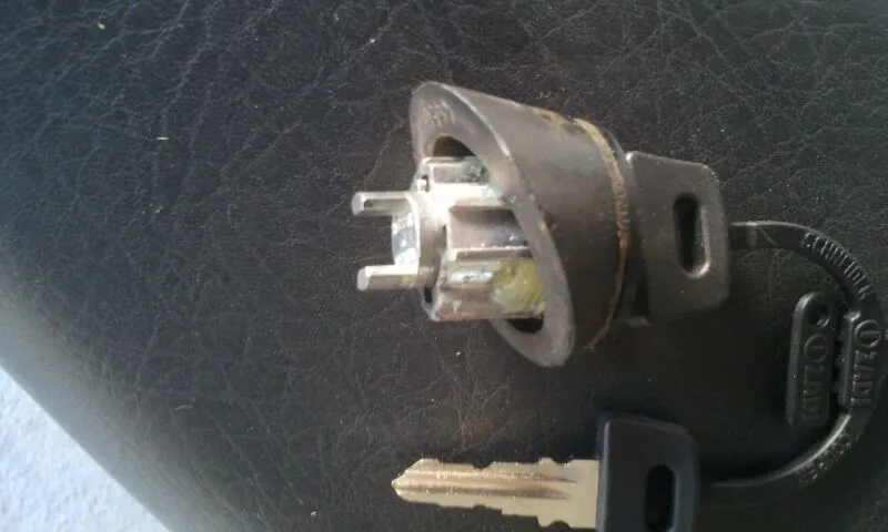 Der Schließzylinder hat in der Rahmenseitigen Aufnahme axial Spiel (ca. 3-5 mm)und letztendlich hält Ihn nur die Gummikappe am Platz. Die beiden Nasen des Schließzylinders rutschen dann aus der Walze die die Verbindung zum eigentlich Zündschloss darstellt. Die Betätigung funktioniert zwar - aber das ist doch bestimmt anders gedacht/konstruiert.