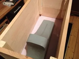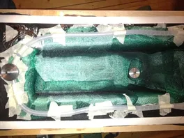 Für das Urmodell wurde eine PX-Kaskade in runder Form verwendet. Nach einiger Schleifarbeit und Modifikationen an der Kaskade wurde damit eine Negativform hergestellt. Der unten abgebildete Kasten dient dazu, einen definierten Flanschbereich zu haben, auf den der spätere Vakuumsack befestigt wird. In die Negativform haben wir gestern die ersten Lagen 200 g/m² Kohlefasergewebe eingelegt. Auf das am Rand befestigte Gewebe folgte dann eine Schicht Abreißgewebe zur besseren Trennung der folgenden Schichten aus Lochfolie und Fließhilfe. Nachdem der Foliensack abgedichtet wurde und die Anschlüsse angelegt wurden haben wir einmal einen Dichtigkeitstest durchgeführt. Leider zeigte sich, dass die extra angefertigten Anschlüsse für die Vakuum- und Klebeleitung an manchen Stellen zu scharfkantig waren, sodass der Foliensack beschädigt wurde und undicht war. Morgen wird dann eine andere Alternative ausprobiert, worüber ich dann natürlich berichten werde. Sollte der Sack das Vakuum nach dem Ausschalten der Pumpe halten, kann die erste Kaskade morgen schon in Fertigung gehen ![]()