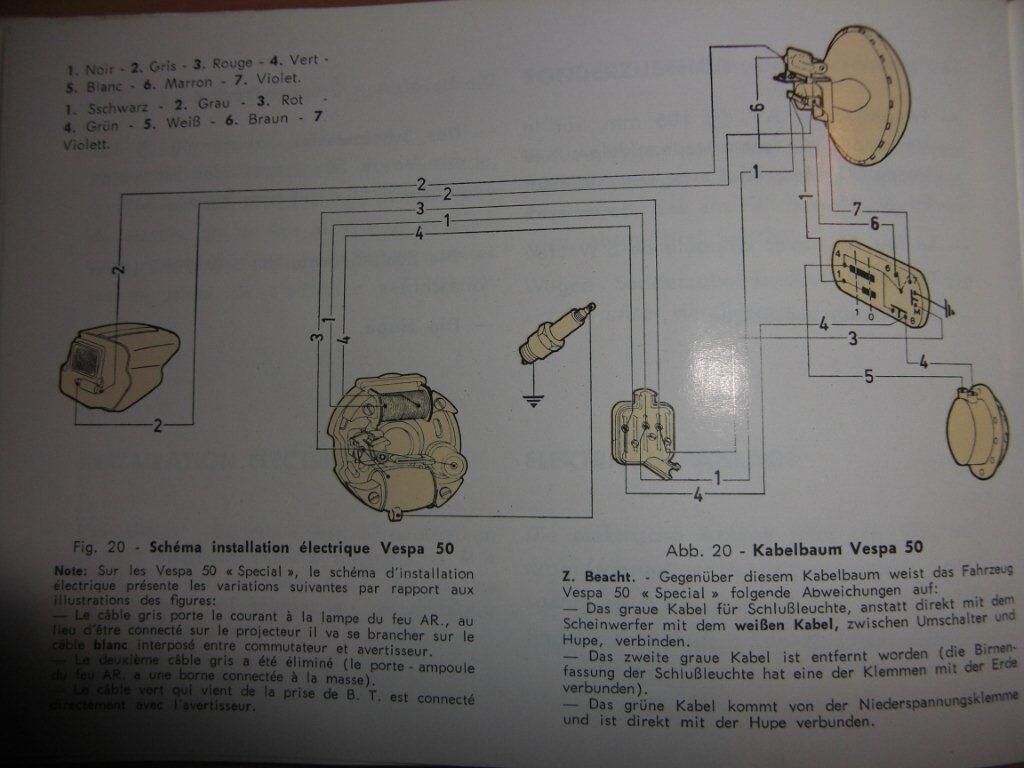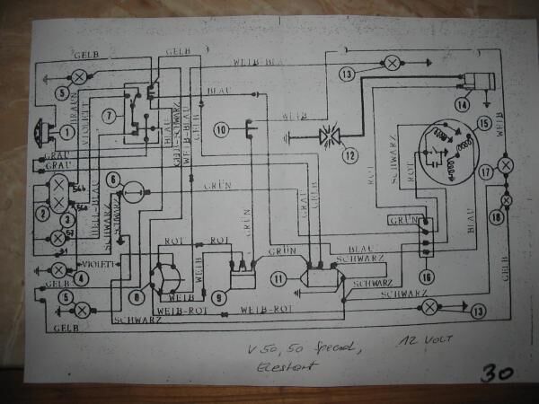 ......leider für die 6 Volt habe ich keinen, es scheint auch für dieses Modell keinen "offiziellen" bzw. speziellen zu geben. In der Bedienungs-anleitung der österr. Spezial (allerdings 12V - Ausführung mit Blinker und Zündschloß) wird lediglich auf Änderungen zur 6 Volt Anlage hingewiesen anhand der älteren Schaltpläne der V50.