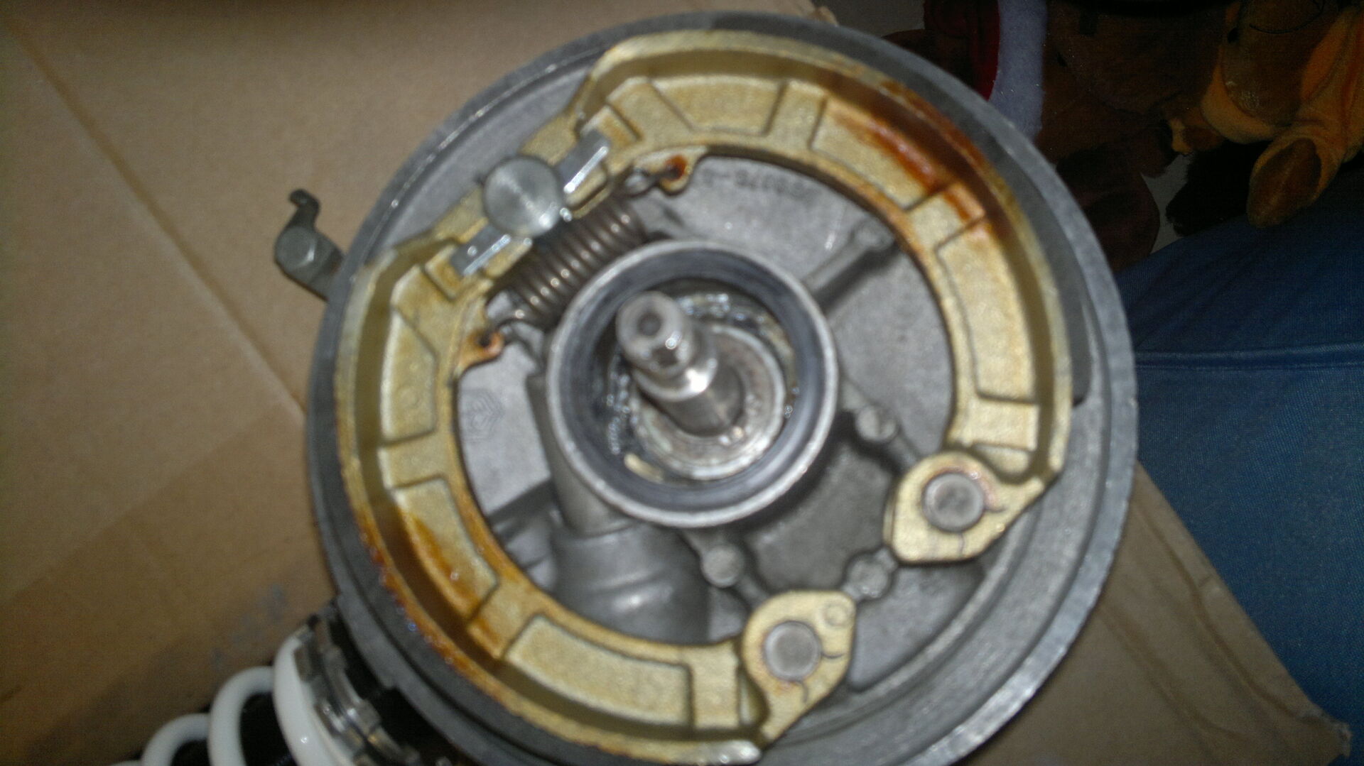 heute wollte ich auf meine Gabel die vordere Bremstrommel montieren. Irgendwie sah das allerdings etwas anderes aus als ich es aus Schneiders Reparaturhandbuch(Auflage14) gelesen hatte bzw. die Bilder zeigten andere Teile zur Montage.