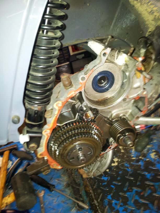 So nachdem die neue zűndung drin ist mit neuem kabelbaum usw ist der Motor immer noch hoch gedreht. Motor auf gemacht, Kurbelwelle ist Schrott, durch den Simmering kam die Falschluft.