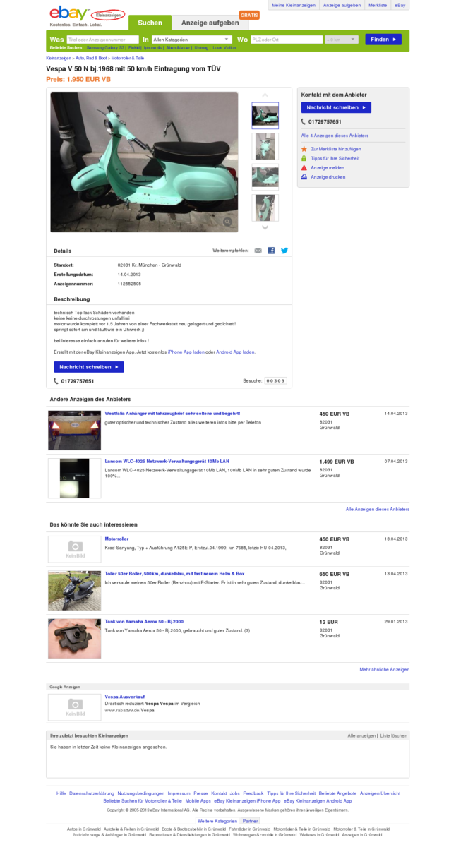 Habe nun folgende Vespa gefunden - würde mich sehr freuen, wenn Ihr mir kurz Eure Meinung dazu schreiben könnt:
