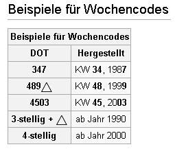DOT 483 = 48. Kalenderwoche 3 = Produktionsjahr
