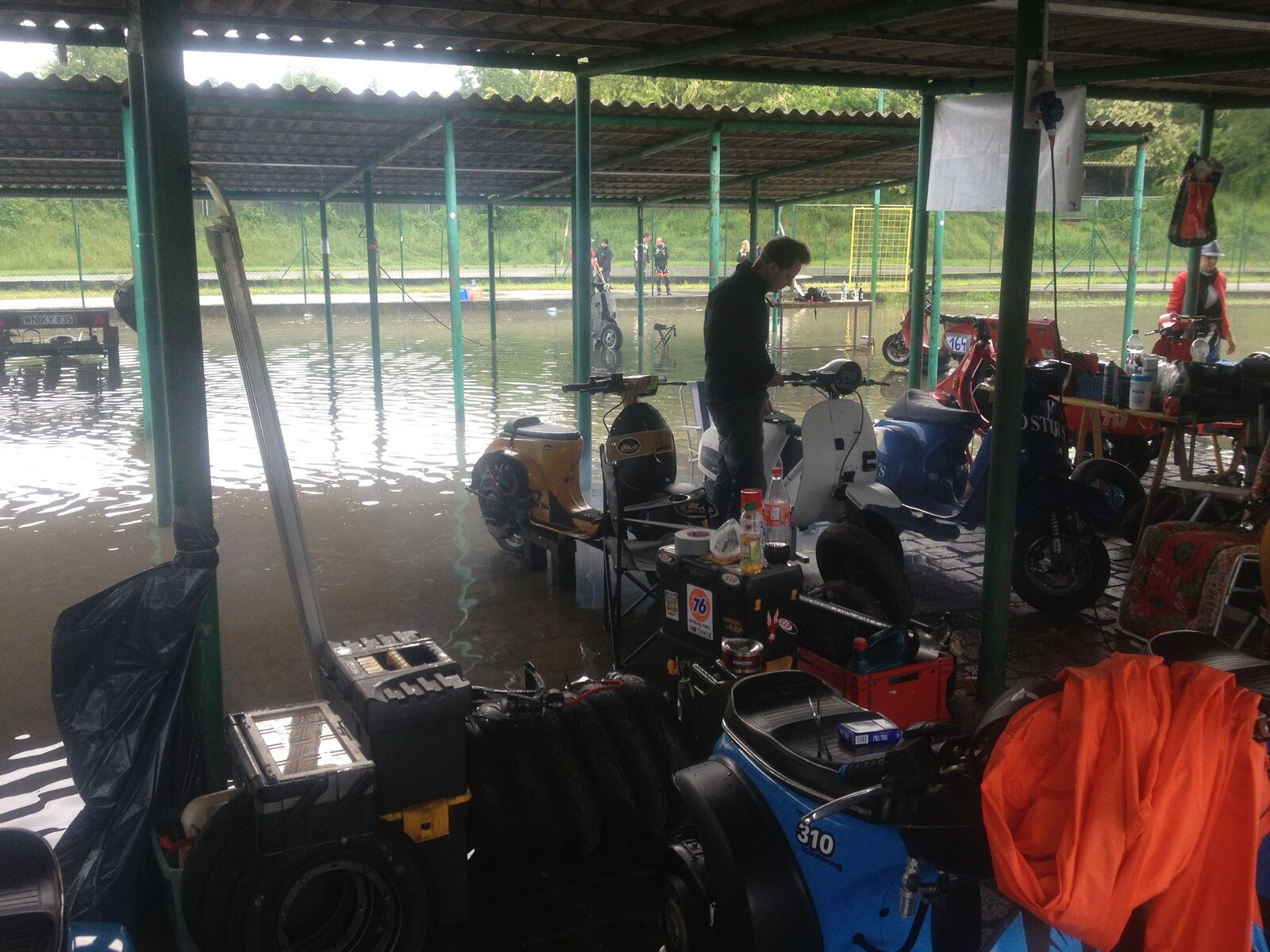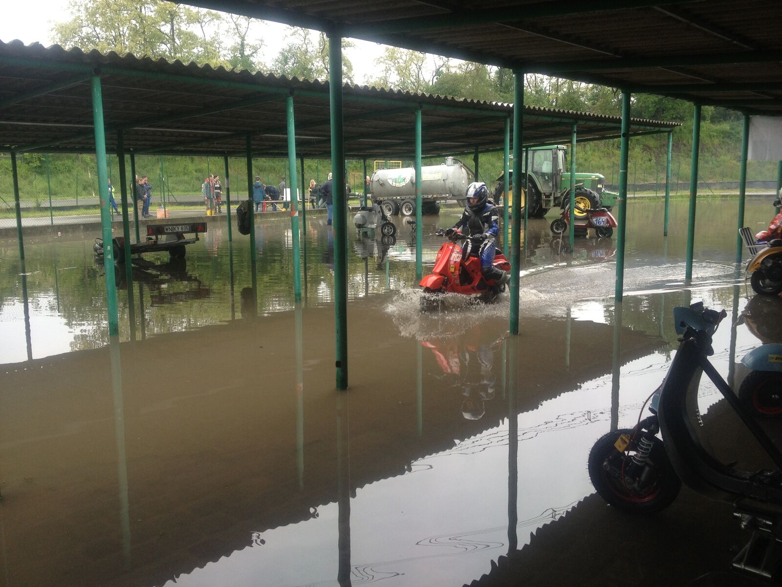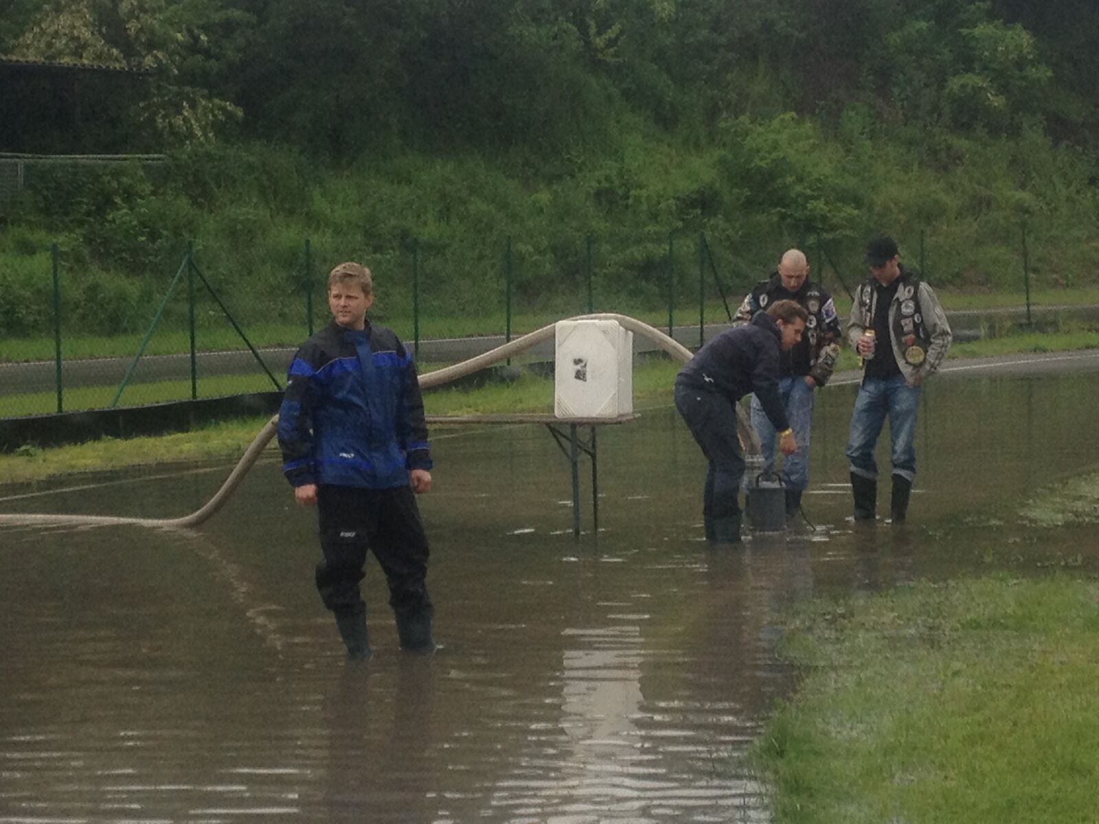 auf der strecke standen zeitweise über 20 cm wasser dort in der senke. es wurde 2h abgepumpt, erfolg war erst zu sehen, als der regen dann endlich um 1 aufgehoert hat. ein netter bauer hat mit seinem wasserfass auch noch diverse kubikmeter weggefahren.