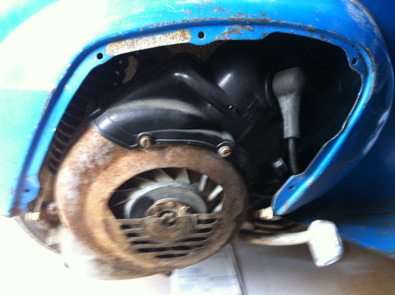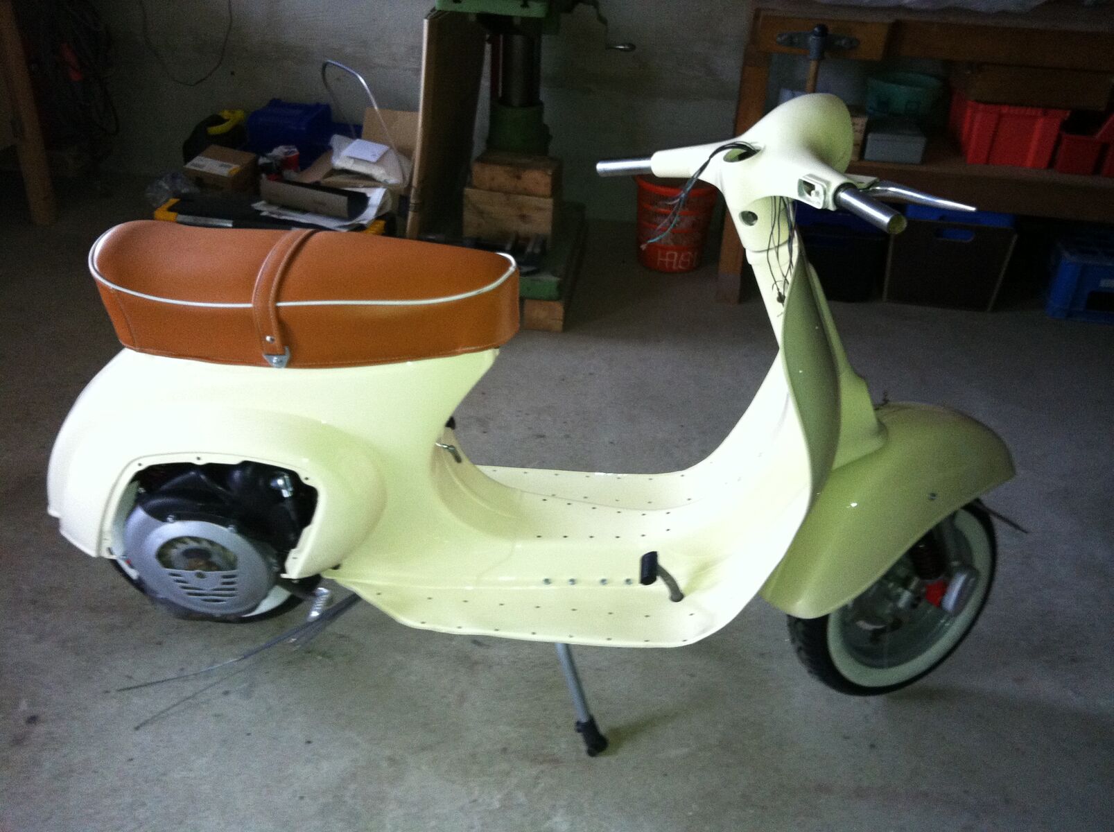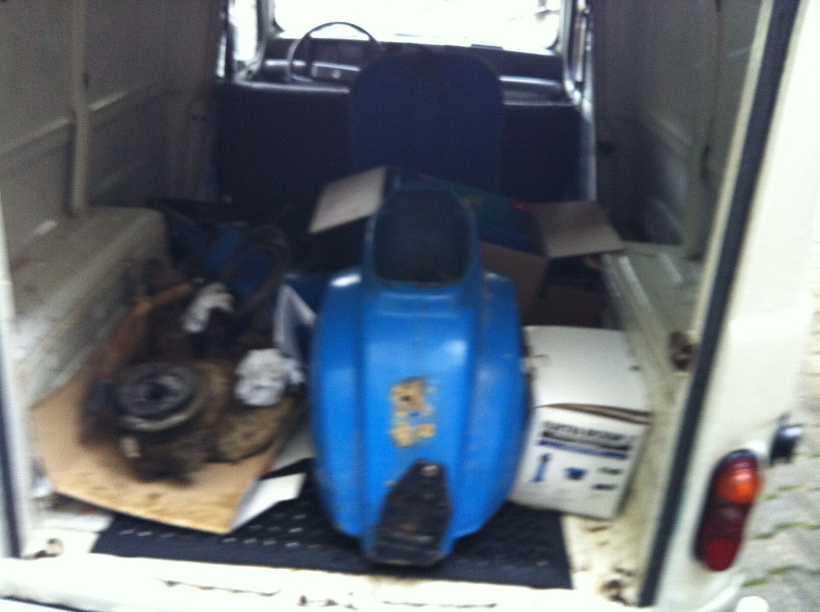 Zu Hause angekommen wurde die Vespa direkt im Nachbarshaus (meine Frau soll ja nichts merken) zerlegt (ach ja mein Sohn war natürlich mit dabei :->):