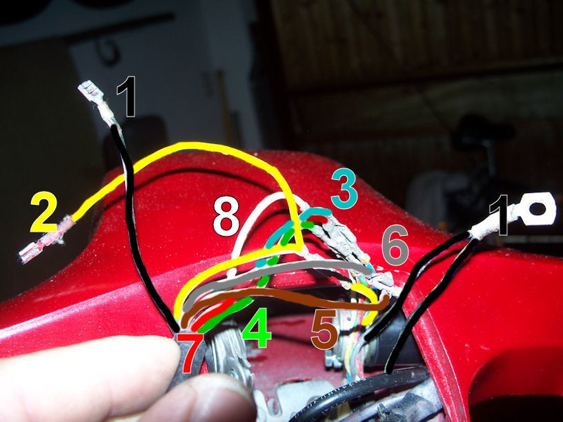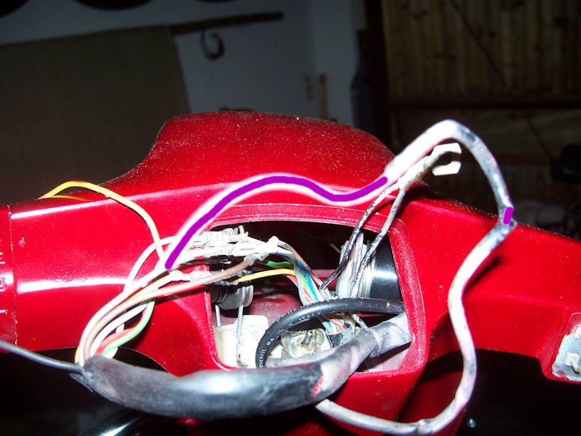 • bei deinem kabelwirrwargemale kann ihc nichts erkennen. jedenfalls ist rot = unterbrecher grün = saft vom motor für licht über hupe. weiß ist licht ohne hupe. gelb ist spannung für die blinker. welche farben zu deinen blinkern gehen musst du mal selber rausfinden. (glaub braun und lila waren es)