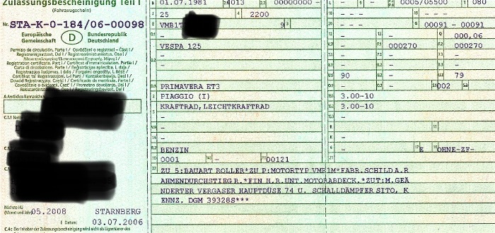 Normalerweise bekommst das Datenblatt direkt von Piaggio Deutschland, allerdings ist dieses ja ein nie in der BRD zugelassenes Modell. Du wirst vermutlich dann ein Datenblatt von Piaggio Italien holen müssen und das ist meines Erachtens ein bisschen komplizierter.