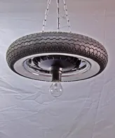E14-Fassungen in der Felge nach oben befestigen und wir sind kurz vor dem Kronleuchter, unten rein das Lüfterrad als Ventilator.