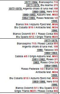 ich such schon seit geraumer Zeit das Internet nach der Farbpalette ab die Vespa 96 für die PX 125 E Lusso Modelle angeboten hat. Die meisten "Lackseiten" hören mitte der 80er Jahre einfach auf. Vll bin ich ja auch zu blöd des zu finden. Kennt vll jemand von euch nen Link zu ner vollständigen Seite?