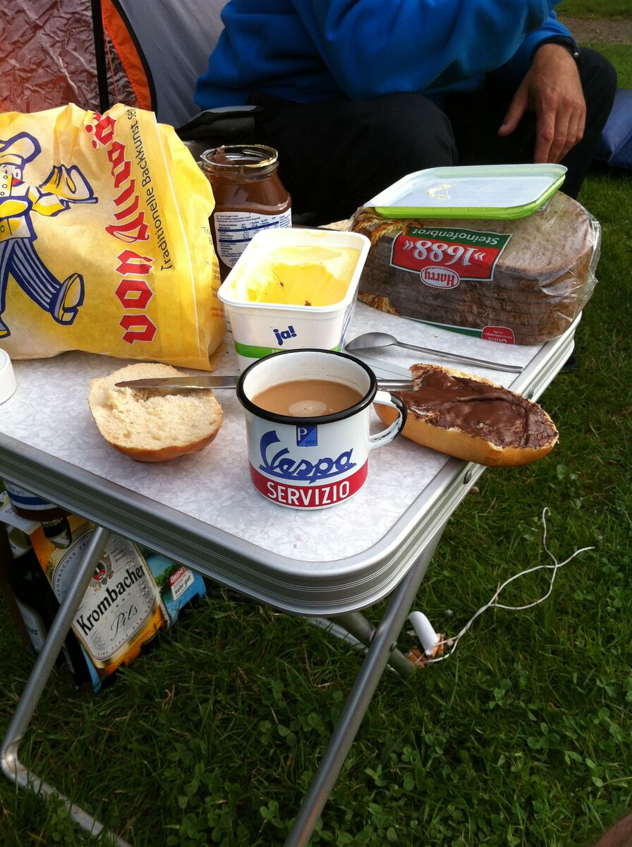 Nach ca. 5,5 Stunden und 146km waren wir dann auf unserem Campingplatz und bauten die Zelte auf (nachdem wir das erste Bier aus hatten(;-)). Das Wetter war trocken, aber die Sonne ließ noch auf sich warten. Ab Freitag hatten wir dann aber unser Wunschwetter, Sonne und warm!!