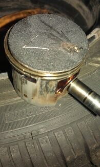 hab heute den zylinder ausgebaut siehe bilder... kann es daran liegen das der kolben eine schwachstelle hat??? zumindest ist der an manchen stellen schwarz