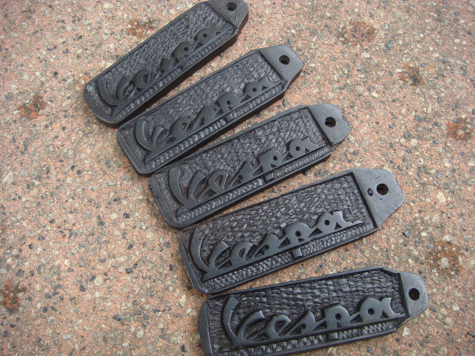 Schnitzer an dem Vespa-Schriftzug. Sie sehen etwas anders aus, sind aber