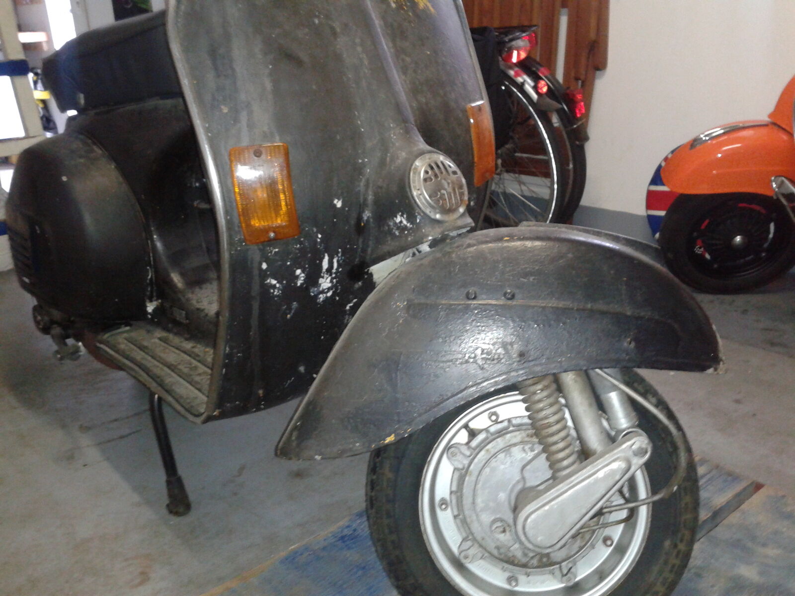 Vespa Rally 200, EZ: 1977, seit 2007 abgemeldet. Schlüssel fehlen alle, aber wenigstens Papiere dabei.