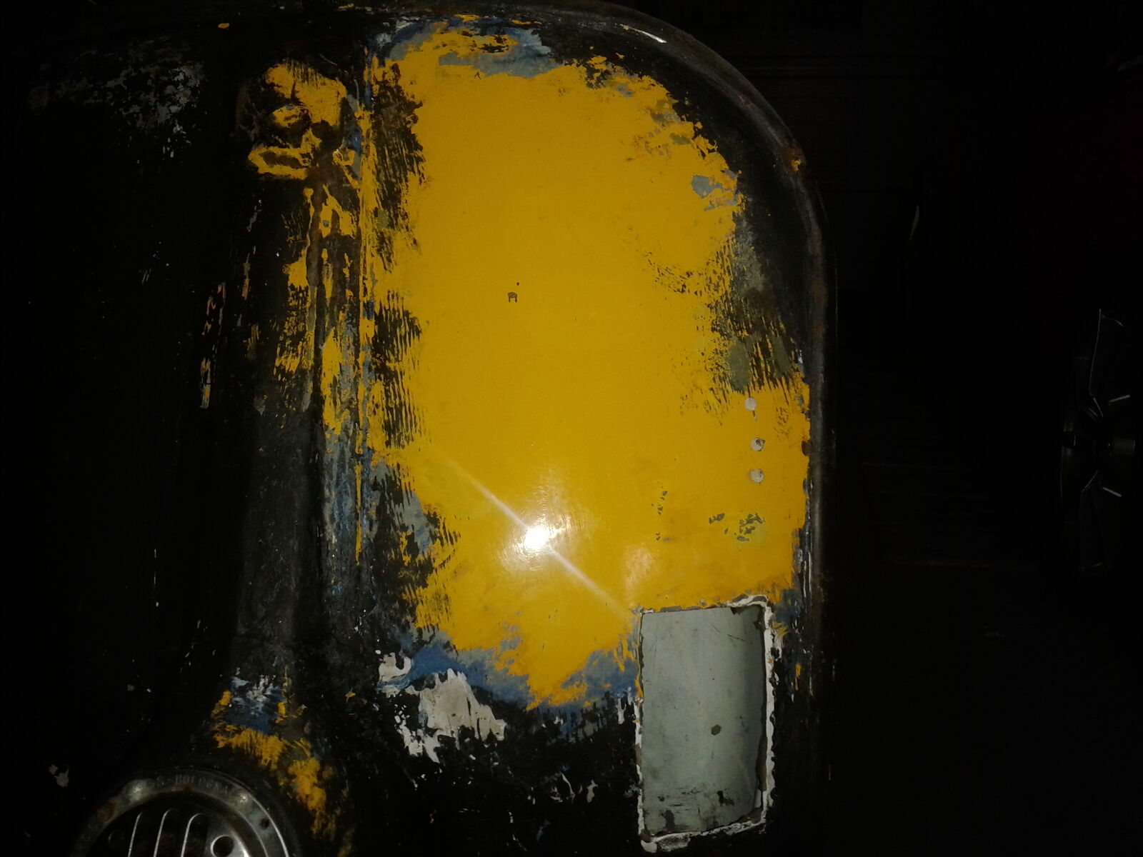 Jetzt werde ich vorne bis zu den Fuck-Blinkerlöchern erstmal weiter abbeitzen und dann müssen die ollen Löcher ja auch wieder zugeschweisst werden (was mein Schwager als Metallschlosser machen wird). Ich bete, das mit dem Schweissen und der O-Lack-Rettung irgendwie kombinieren zu können.