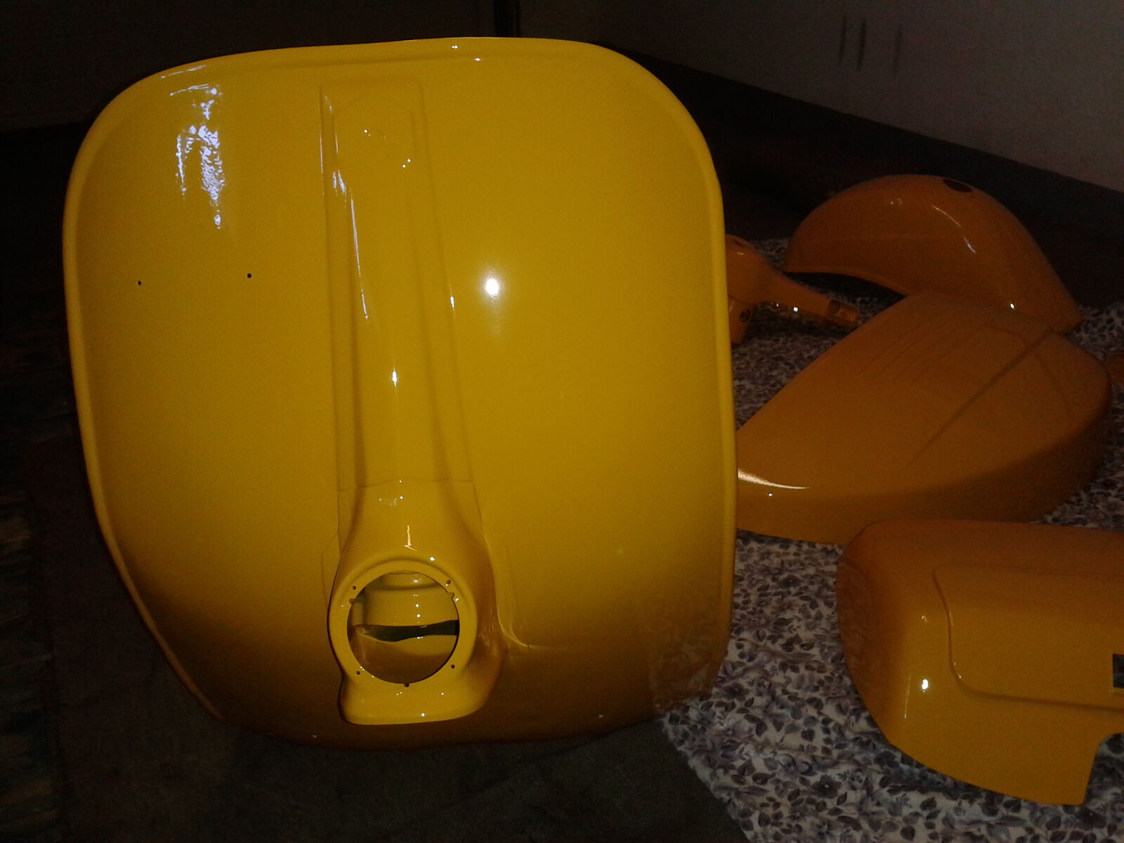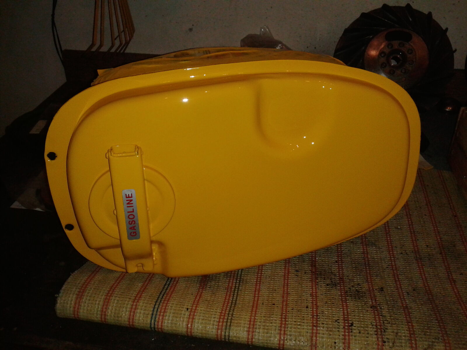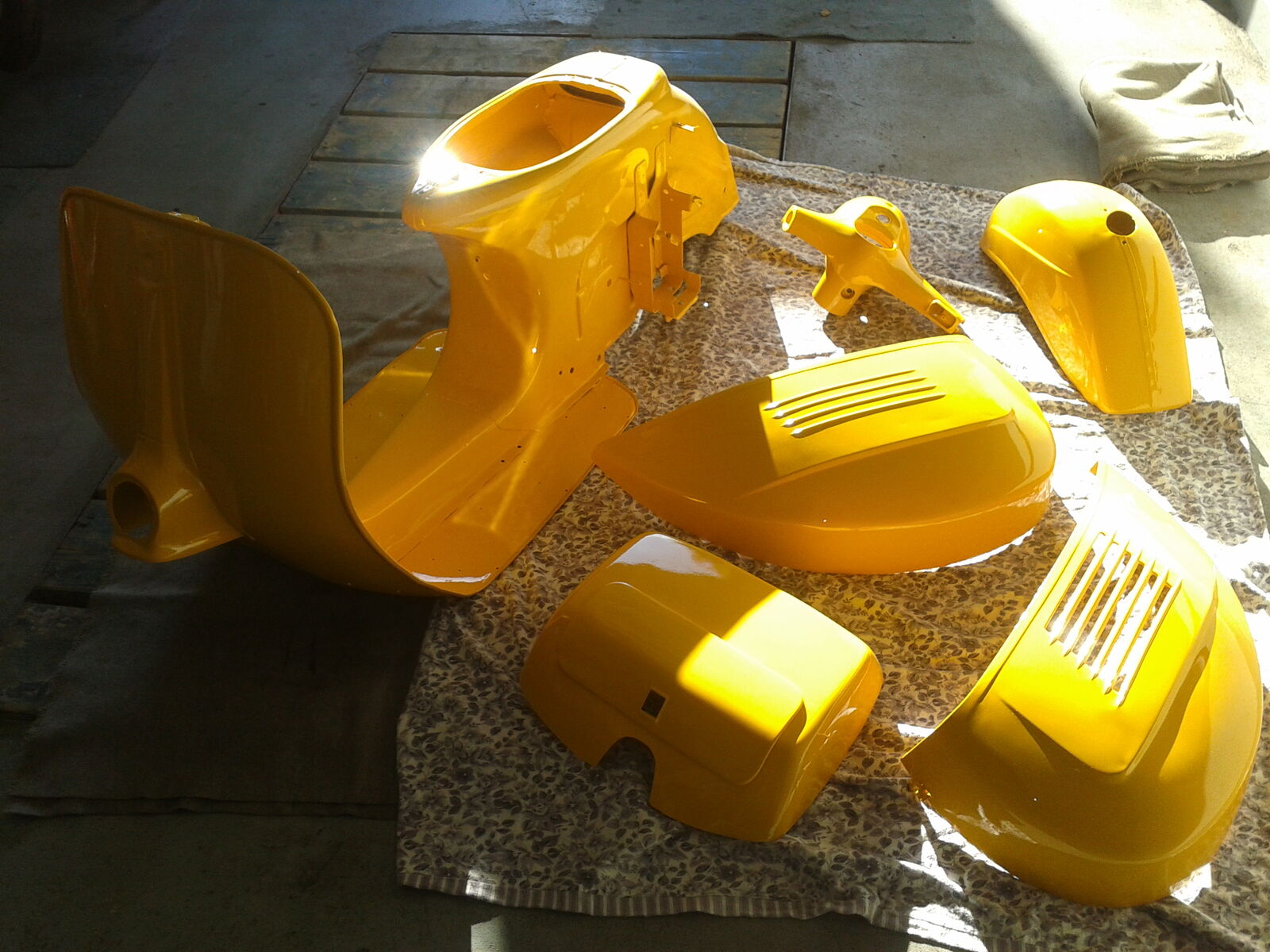 Aber Spass beiseite. Was ich mit dem Tank konkret mache, weiss ich noch nicht genau. Hängt davon ab, wie der Rahmen mach dem Lackieren vom Ton hin ausfällt. Wenn´s passt, knall ich evtl. Klarlack drauf (nur noch der etwas matte Basislack drauf) oder ich lackiere ihn oben einfach neu. Werde mir dann bei vespafarben.de oder so halt eine 2K-Spraydose im Vespa Sonnengelb 908 besorgen.