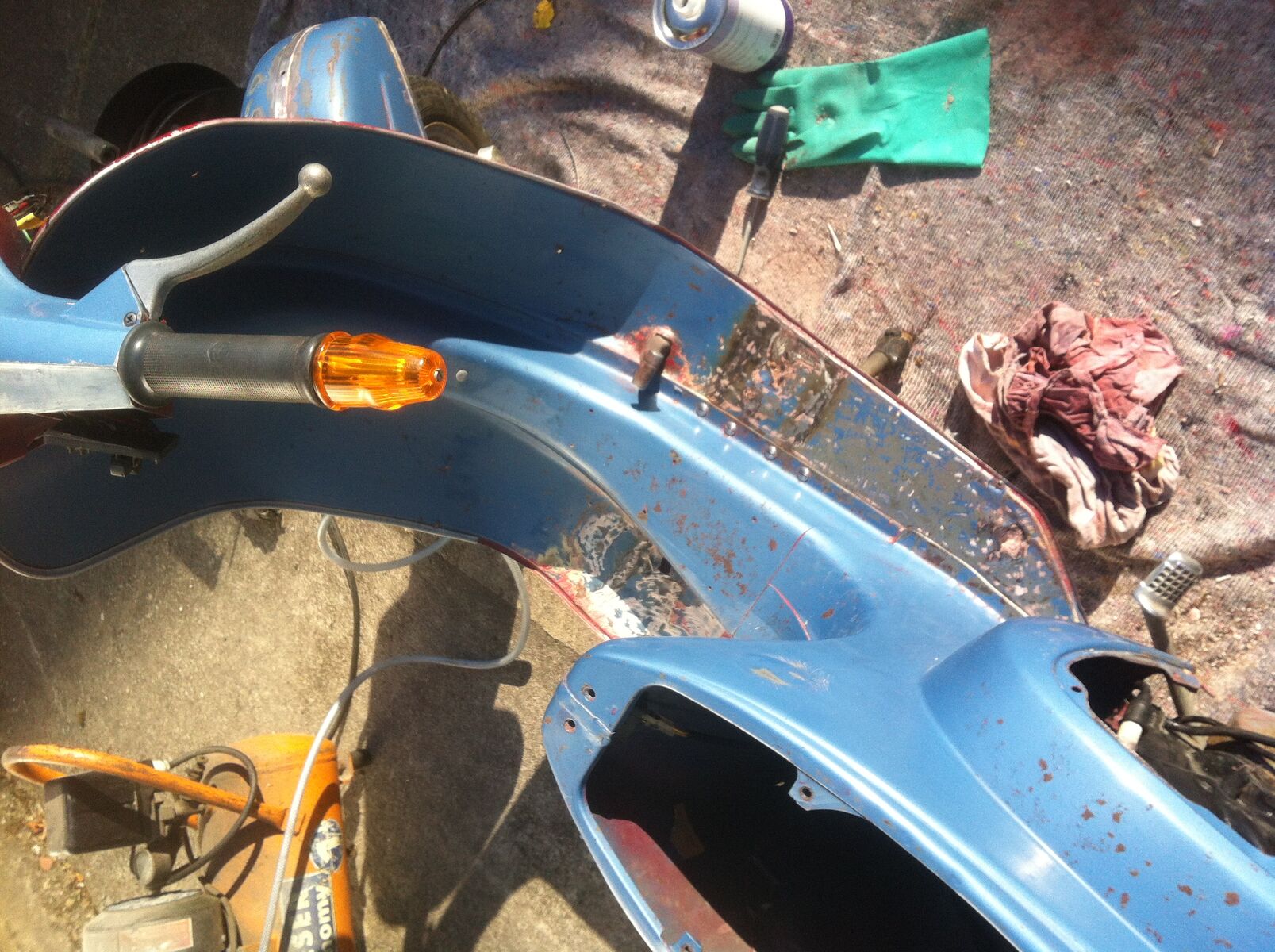 ABER ich machte auch hier und da unschöne Erfahrungen, wie z.B. das der Vorbesitzer einfach gespachtelt hat an stellen wo es nix zu spachteln gab, es sei den er mochte die Typischen Vespa Rundungen nicht