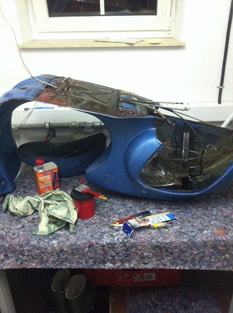 Nun gut... Gestern habe ich dann bei einem Tagestrip mein neues Baby abgeholt und habe Abends noch den Baumarkt geplündert und Aceton gekauft, da ich erst einmal mit nicht so scharfen Mittelchen beginnen wollte. Heute dann juckte es mir in den Fingern und begann die Jauche zu entfernen. Nach 5 Stunden und 2 Litern ACE können sich die ersten Erfolge sehen lassen wie ich finde