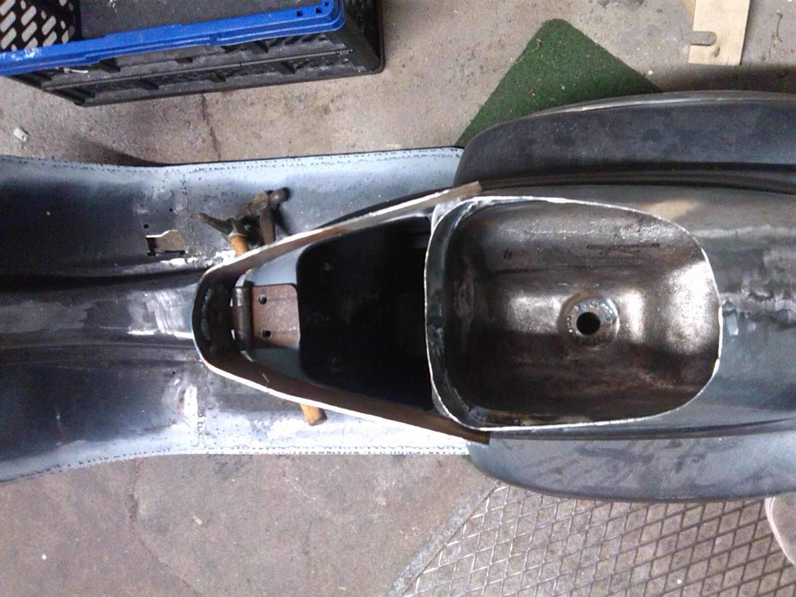Schwallbleche um das Herumschwappen vom Sprit im Tank während der Fahrt zu verringern? Denke das wir nicht nötig sein, meine BMW hat einen 25L Blechtank der auch noch länger ist, das geht auch ohne Probleme.Bin eher auf den Tankstutzen gespannt, der da unter das Sitzbankpolster soll.