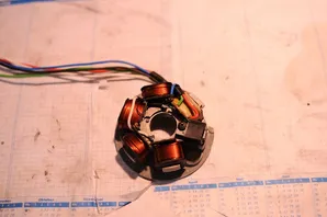 Zündgrundplatte und CDI am Motor festgeschraubt