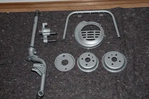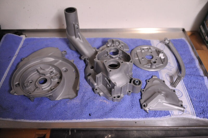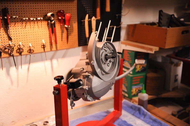 die Blechteile gingen zum strahlen, die Motorteile hab ich selbst glasperlengestrahlt, der Zusammenbau des Motors waren die ersten Schritte im Weihnachtsurlaub