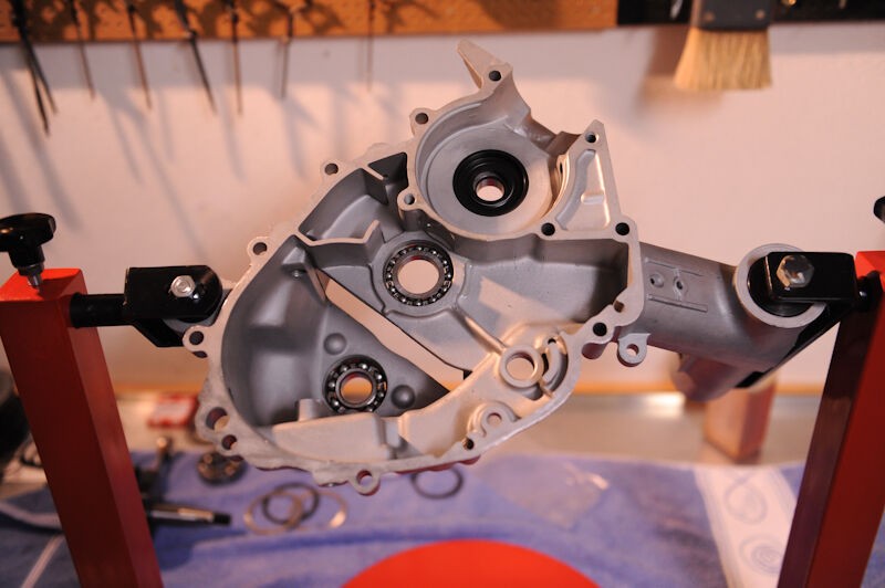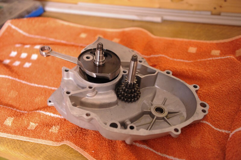 Mazzucchelli Kurbelwelle und DRT Runner Nebenwelle in der anderen Gehäusehälfte montiert