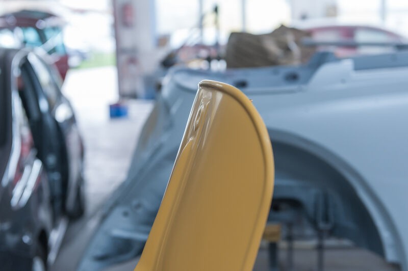 wieder in die Lackierkabine