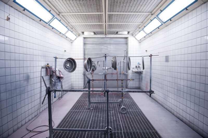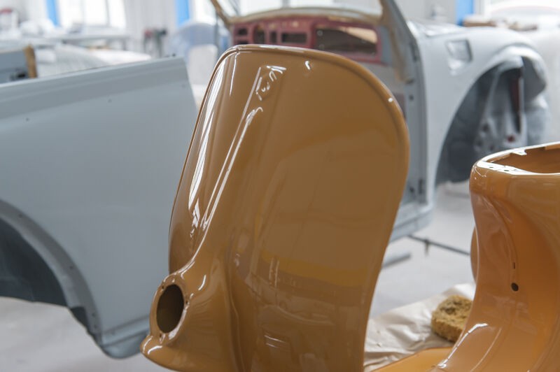der Roller in der Lackierkabine
