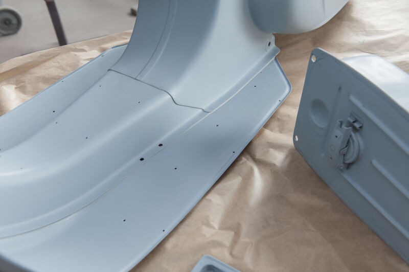 • Januar oder Februar, als beim befreundeten Lackierer etwas weniger Betrieb war hab ich mit den Lackiervorbereitungen begonnen. Deutlich mehr Aufwand als ursprünglich gedacht.
