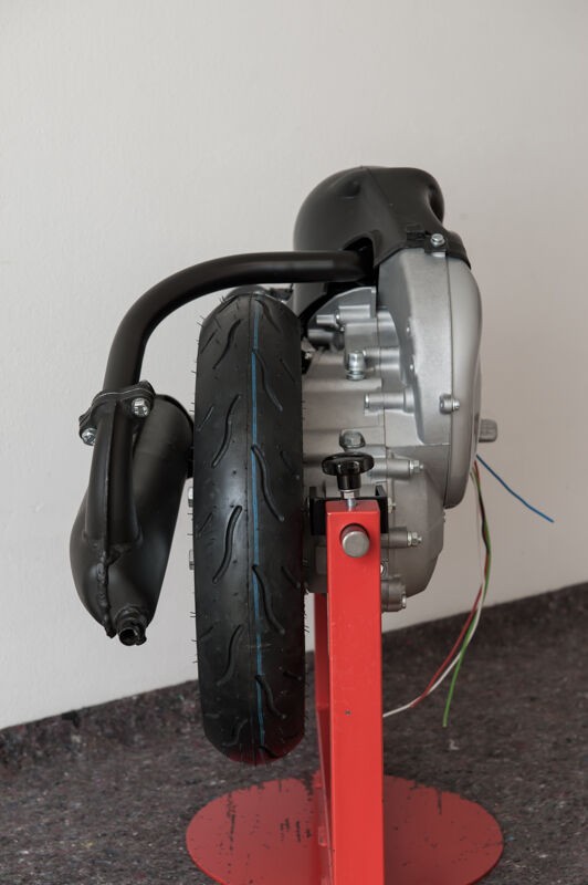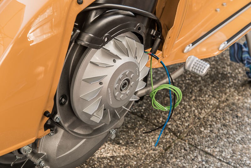 die ganzen Arbeiten hab ich alle im Haus erledigen können, da das Treppenhaus aber relativ eng ist, haben wir den Roller dann zu zweit rausgetragen und den Motor hab ich draußen eingebaut. Ab jetzt gibt's dann leider nicht mehr viele Fotos