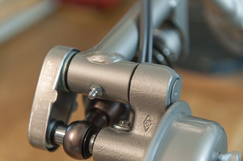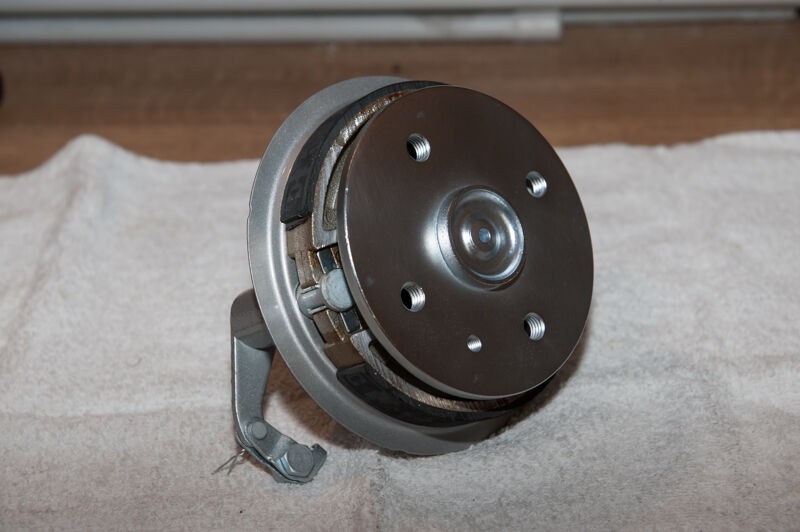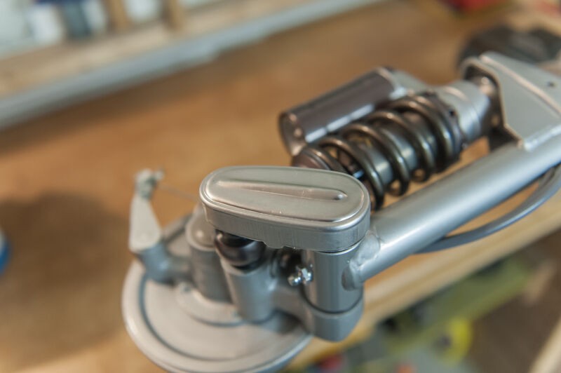 Fußbremshebel Silber lackiert und zusammengebaut