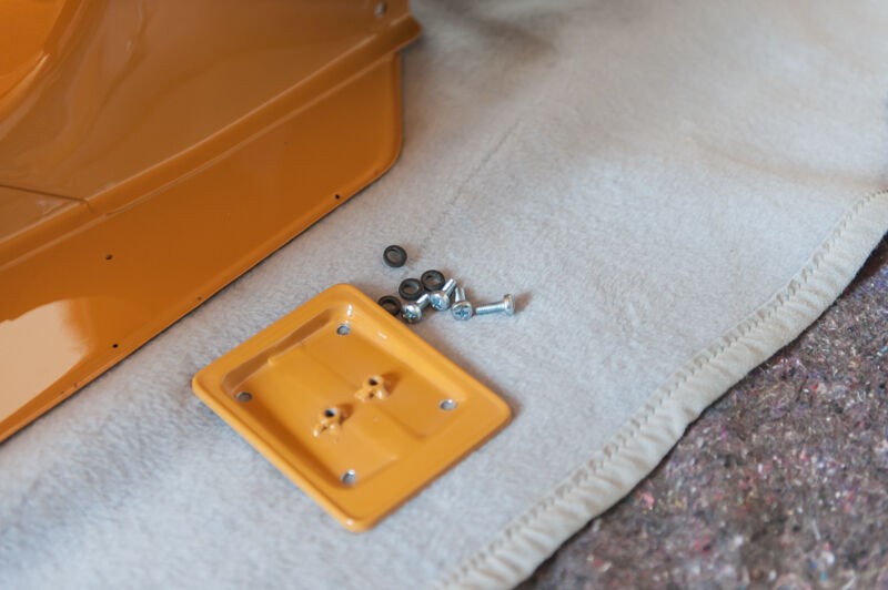 Montage Radträger, die Nieten, die das Blech halten hab ich aufgebohrt, um auch hinterm Blech entrosten zu können