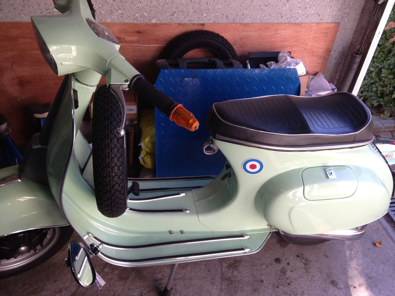 und dem vespaschriftzug, der einfach mal irgendwo hingebappt nicht wirklich gut kommt (dann wenigstens ans beinschild, wo er bei den alten fuffis war)