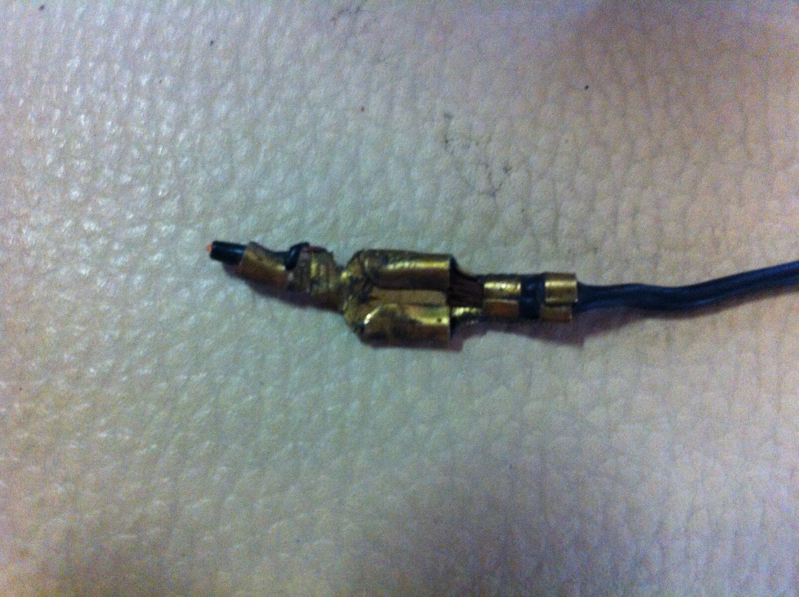 Und hab jedes Kabel einzeln durchgemessen und überall ist Durchgang!Jetzt habe ich heute die Kabel im Lenker nachgebessert (neu zusammengelötet und nen Schrumpfschlauch drüber), sprich ich hab die Verbindungen des Vorgängers entfernt (hat nämlich wie auf dem Bild zu sehen ist etwas kaputt ausgeschaut) und hab dann auch nochmal die Kabel der vorderen Blinker durchgemessen - alles frei! Ach ja die Birnen hab ich auch alle durchkontrolliert!