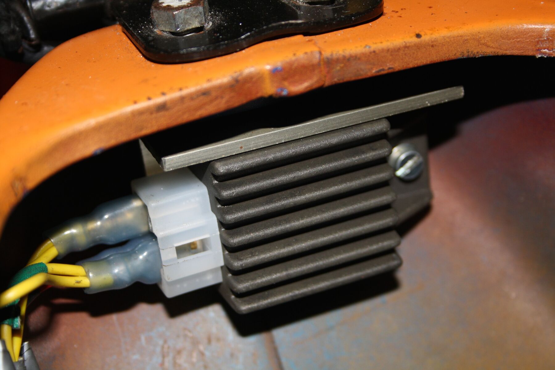 Den Spannungsregler würde ich da auf dem Motor auch nicht hinsetzen. Neben Dreck und Fummelei bringt der Motor ja auch Temperatur, und der Spannungsregler, der ja selbst auch Wärme abführt, könnte das evtl. nicht vertragen. Würde den dann doch lieber, wie die meisten anderen in solchen Fällen auch (wenn kein Gepäckfachbacke vorhanden) oben in im Vergaserraum anbringen.