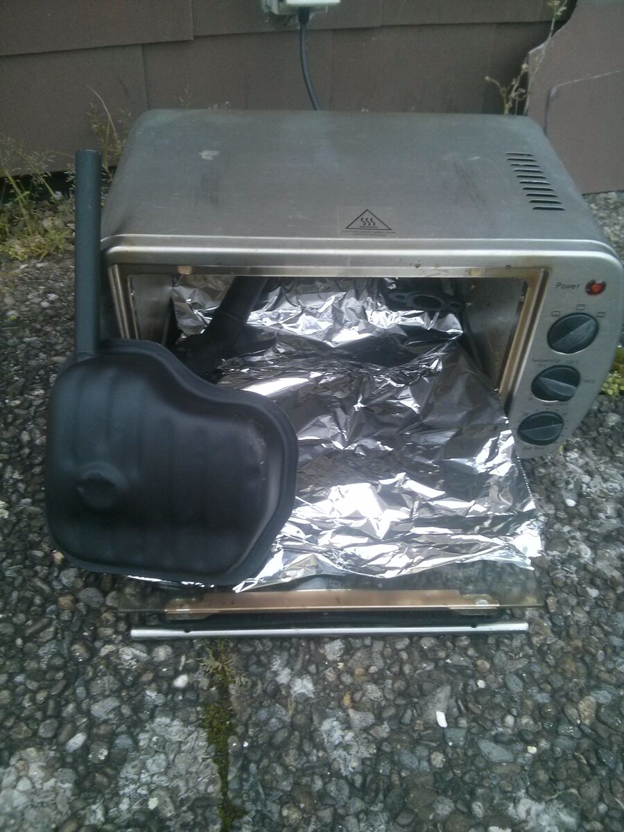 So dann mit Auspufflack lackiert, laut der Anleitung musste man den Auspuff dann bei 200 °C Lack einbrennen 20 min lang.