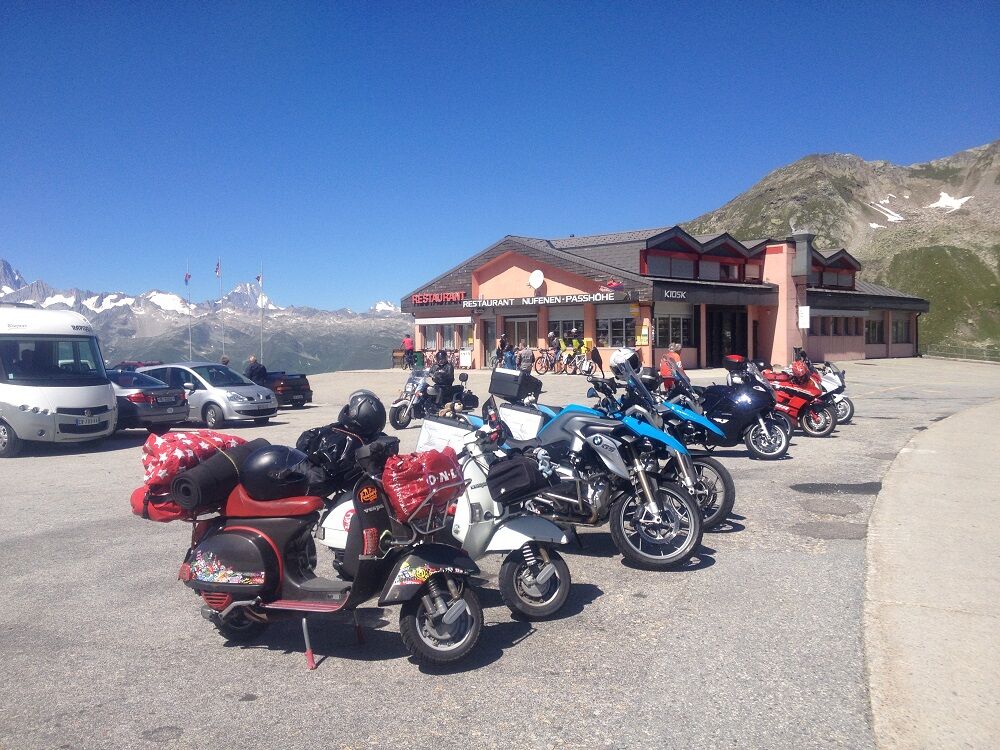 Der Himmel ist blau, wir bekommen noch ein lecker Frühstück, packen die Roller und fahren los. Erledigen den Nufenenpass
