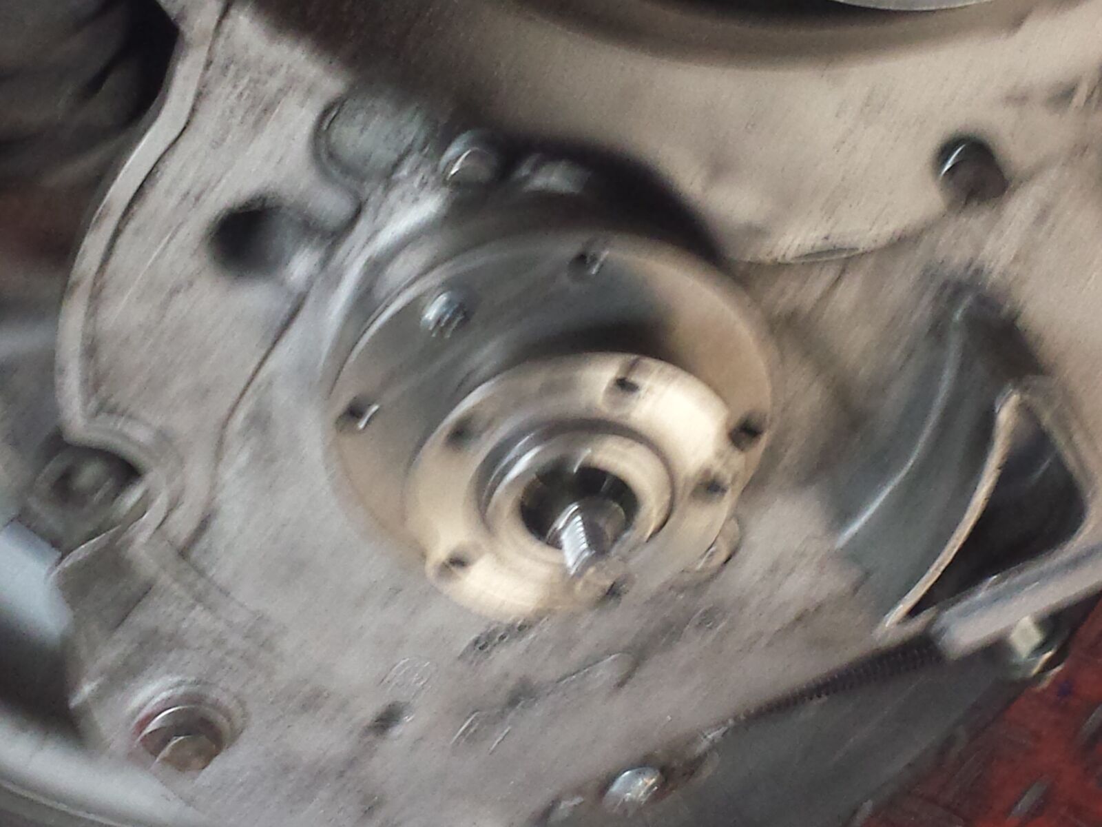 -auf der unteren Riemenscheibe ist sternförmig etwas Getriebeölaufgetaucht alsob es von der Scheibenmutter fein rausspritzen würde...