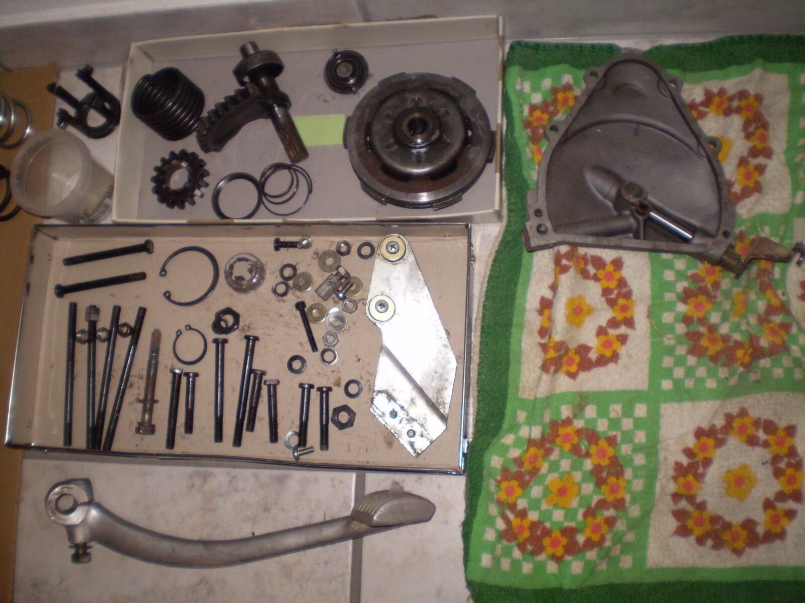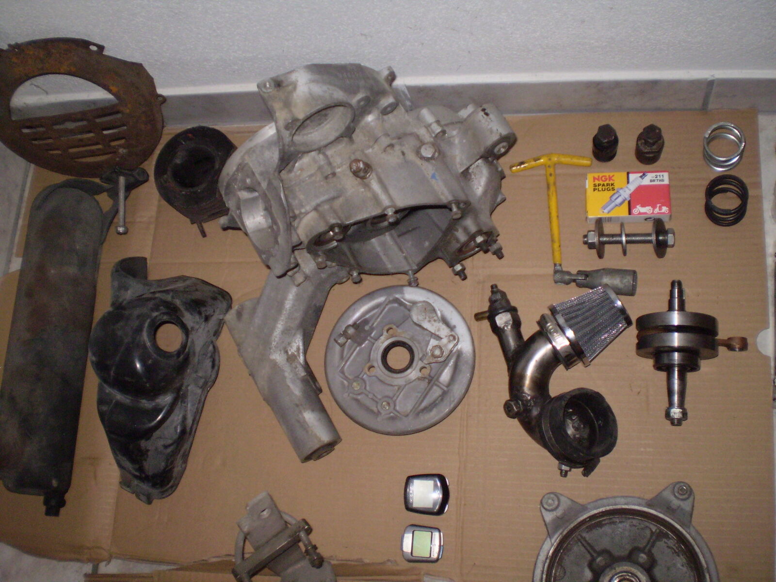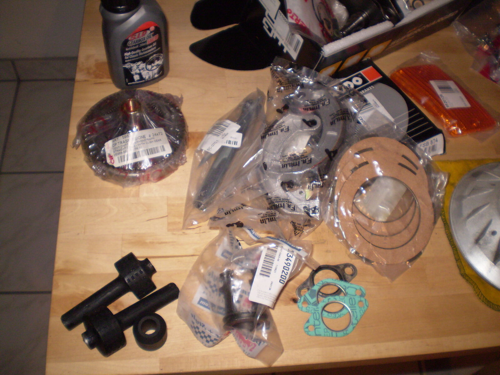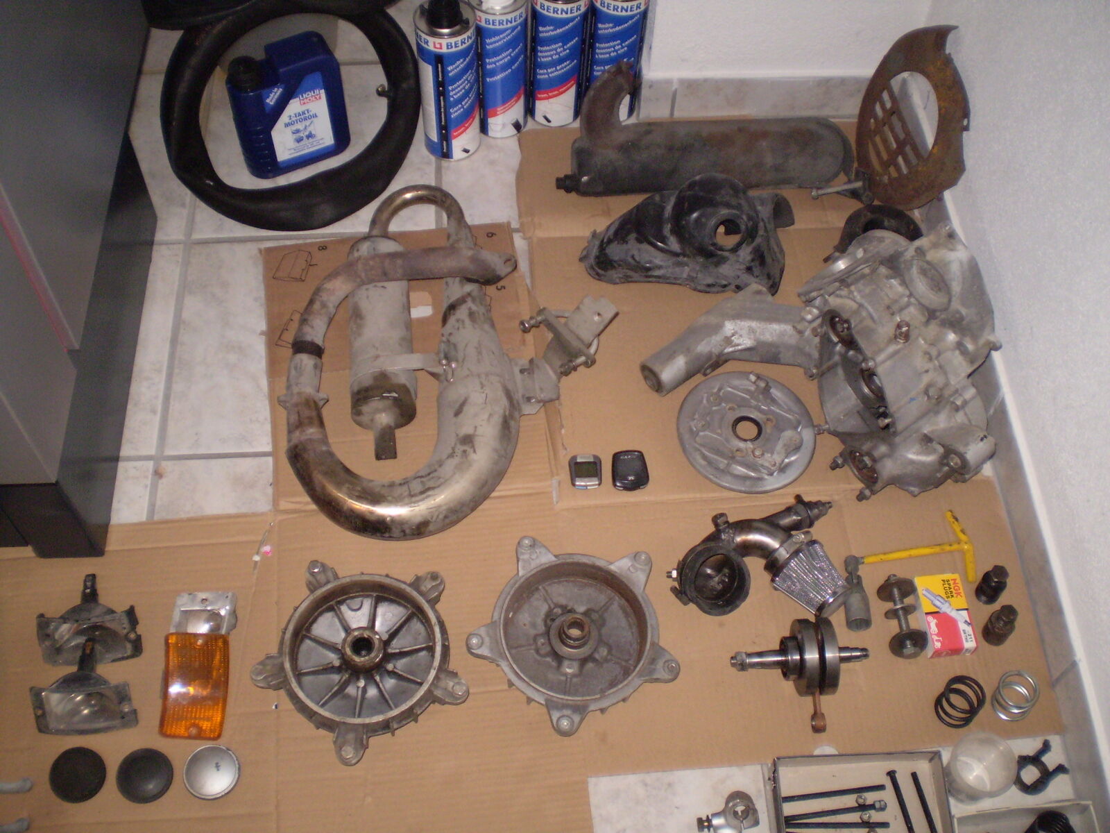Verkaufe alles was ich so an Vespateilen habe, da keinen Fuehrerschein mehr habe. Alles was auf den Bildern zu sehen ist ist zu haben, wer mehr kauft kriegt Rabat oder was als Beigabe...