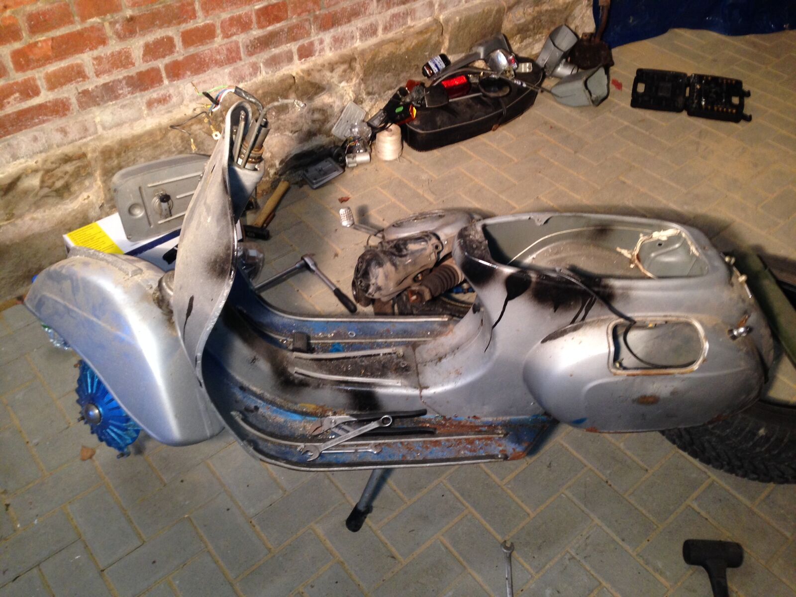 Somit kam ich zu dieser Vespa, ich muss sagen Sie sah nicht wirklich gut aus, aber das ganze nimmt langsam Formen an.