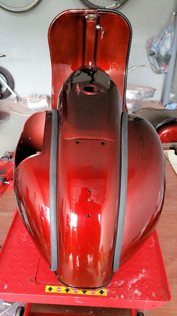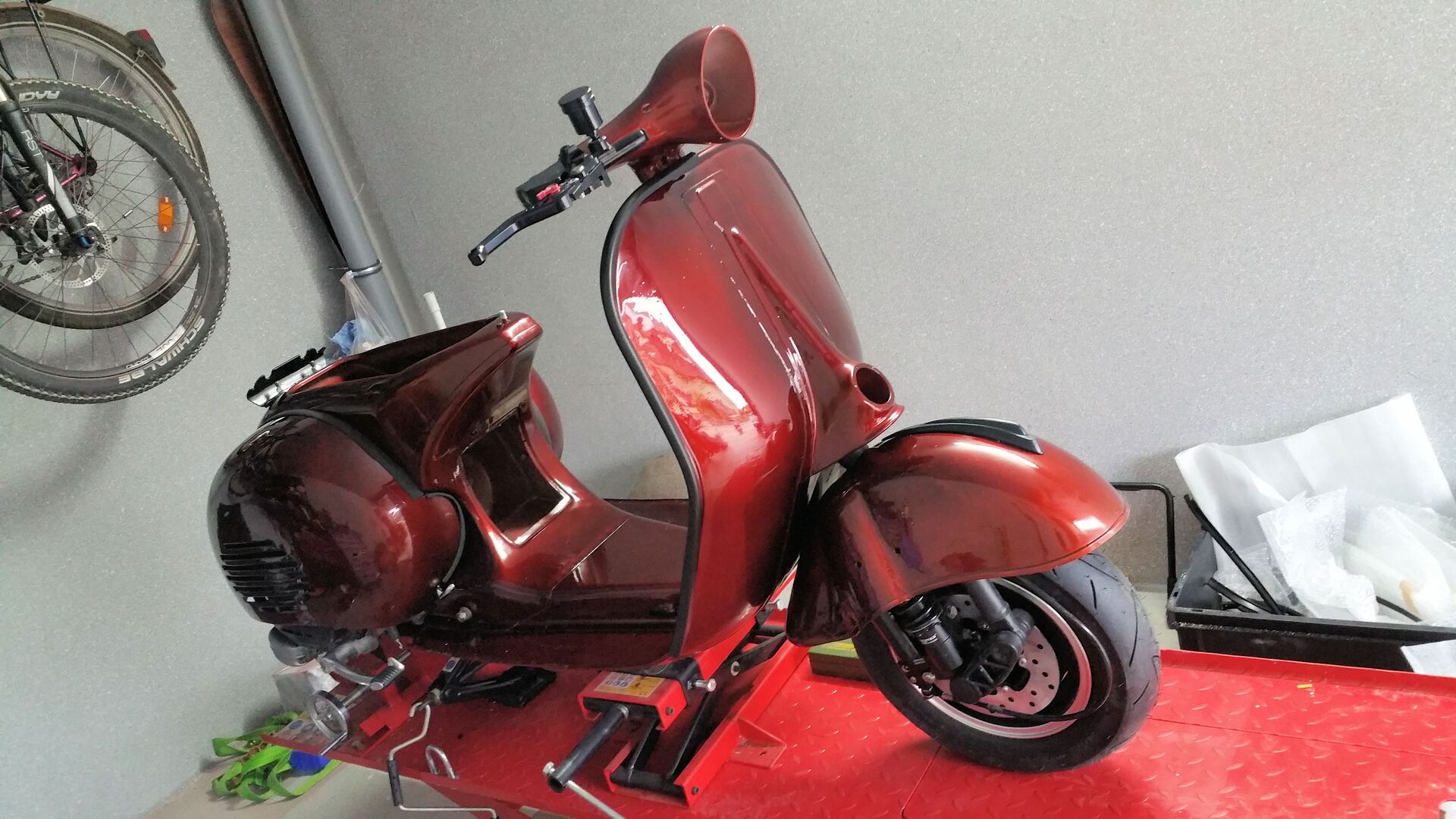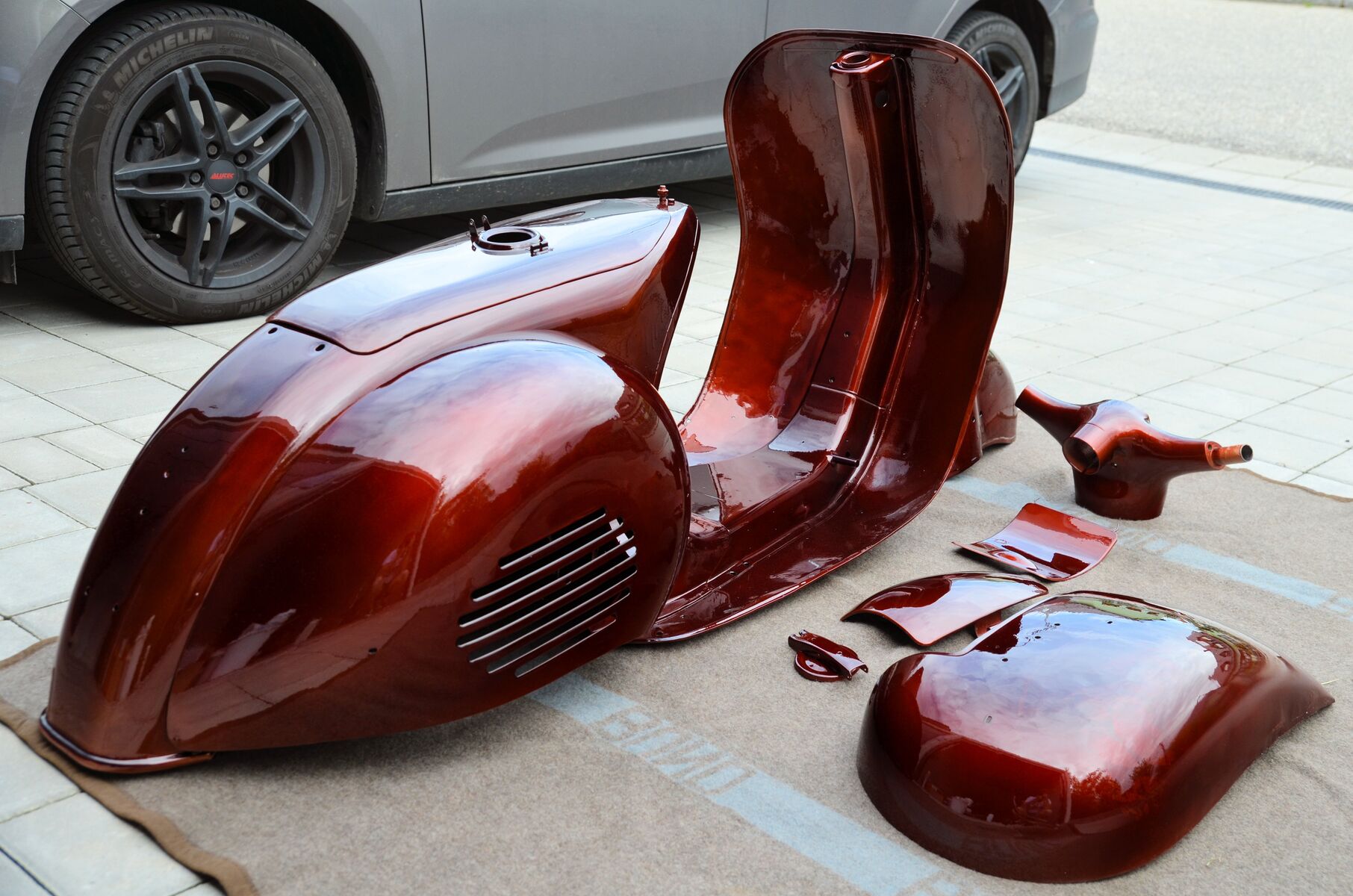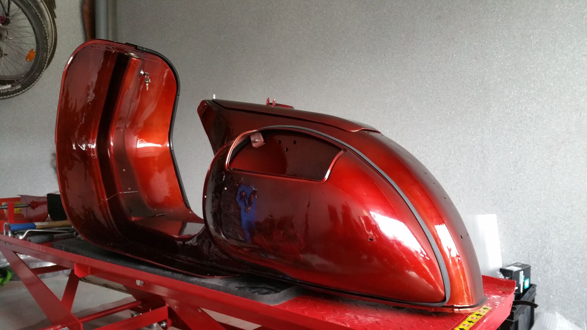 Bäm.... nur noch die Lacknasen rausschleifen und polieren. An der liegenden Seitenbacke sieht man wie mir da die Folie drauf geklatscht ist. Hat halt jetzt nen "Effekt" ;). Ist nicht perfekt aber kann sich sehen lassen denke ich