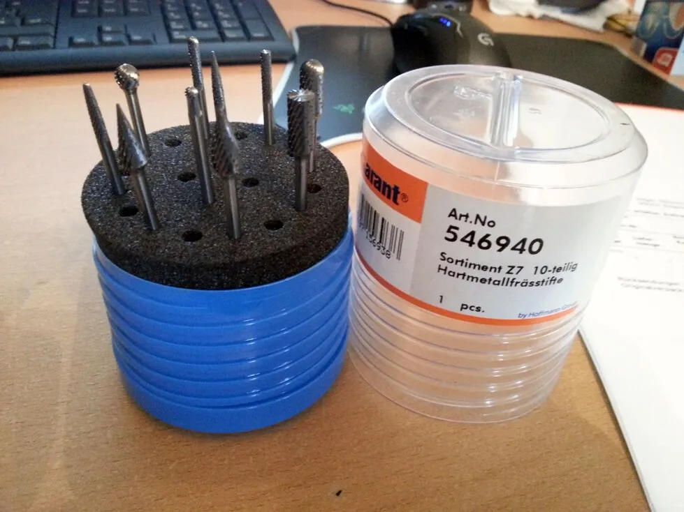 (Rücklicht und Sitzbankhalter hinten)Und der "Kleinfrässtifte-Satz 10-teilig, Z 7 - mittel, kreuzverzahnt HM GARANT" ist endlich angekommen.. und die sind jeden Euro wert. Hatte zuvor des Aldi, Dremel und Proxxon "billig" geraffel. Kein Vergleich zu einander